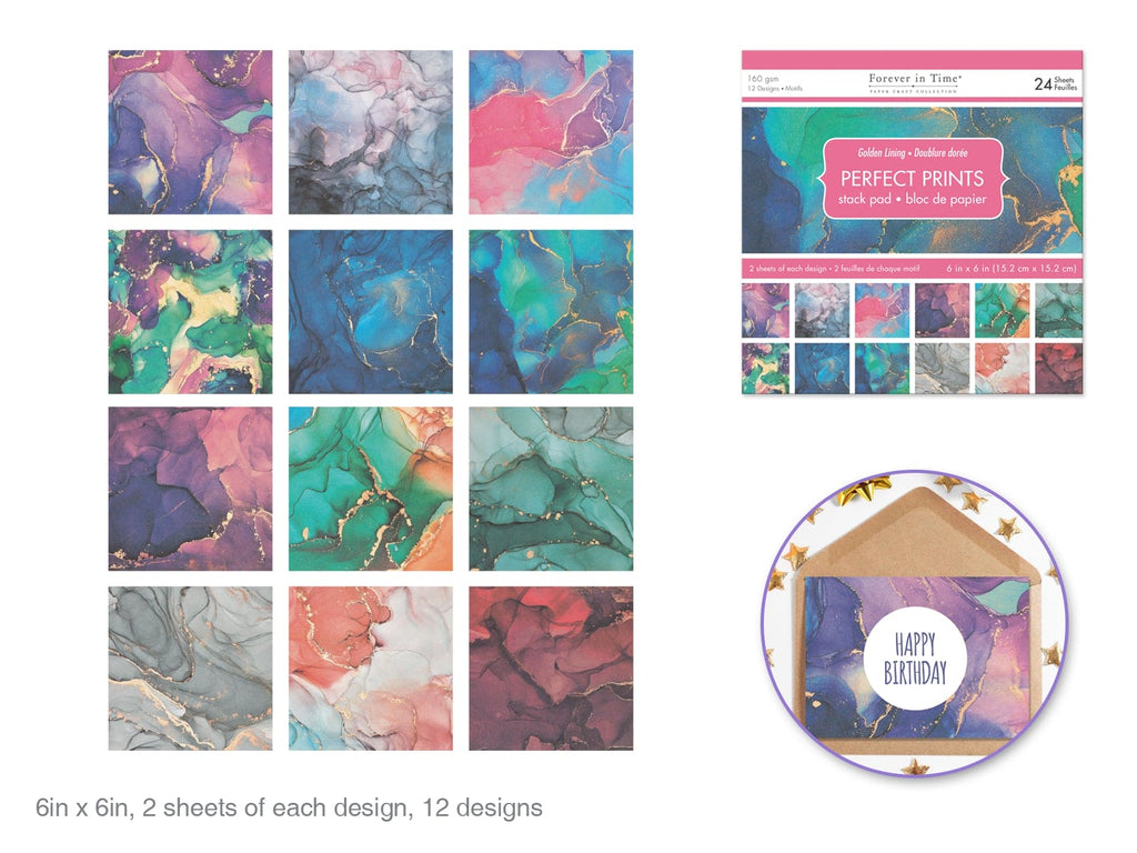 Paper Pads: 6"x6" Perfect Prints Stack Packs x24 Asst I) Golden Lining