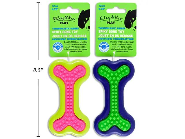 4.75in x 2.5in 2-Tone TPR Spiky Bone. 2 Asst.Colours.