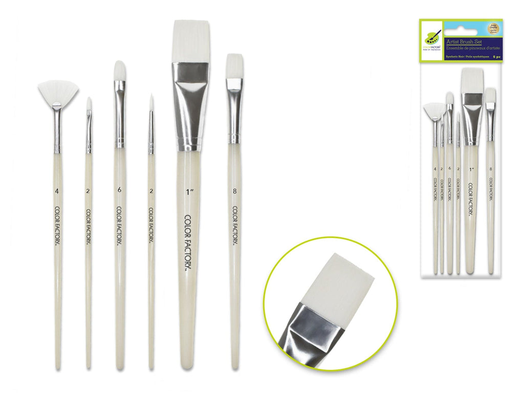 Artist Brush Set: White Synthetic Hair Variety Pack x6 Plastic HandleB) MULTI-SET 2