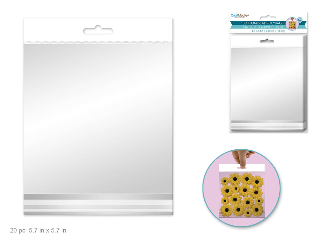 Clear OPP Poly Bags with Header - 5.7x5.7 Inch 20-Pack