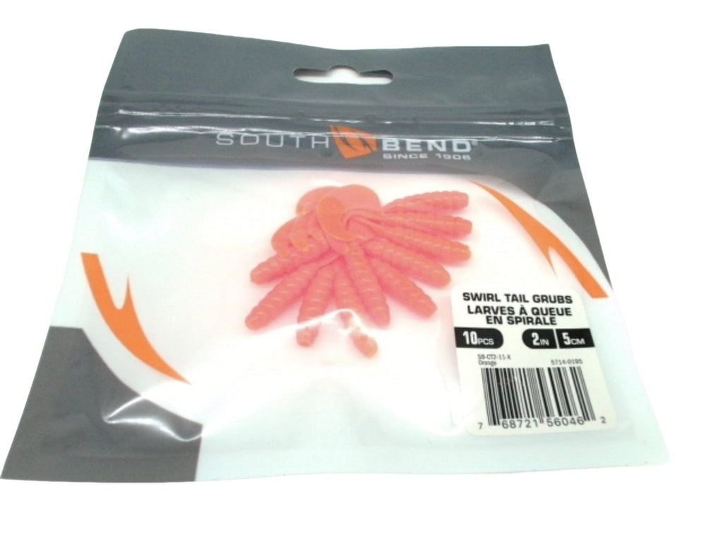 South Bend 2" Orange Swirl Tail Grubs Fishing Lures 10-Pack