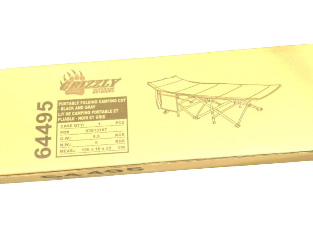 Portable Folding Camping Cot Black & Grey Grizzly Outdoors
