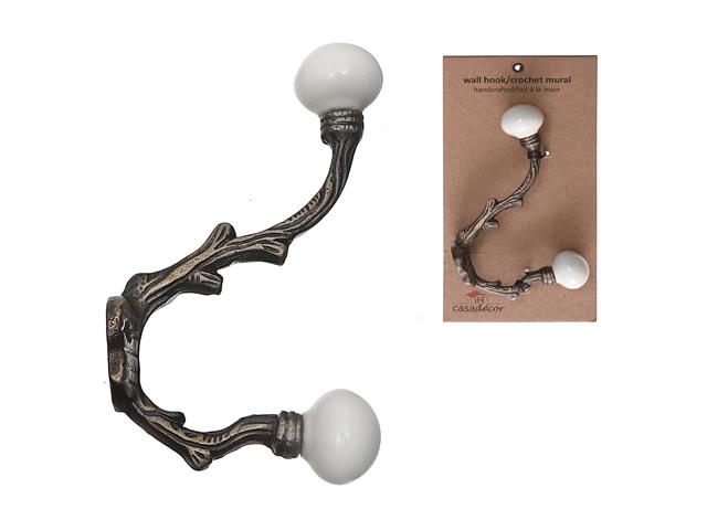 Iron French Hook With Ceramic Ivory Knob Antique Brass 1.25 X 3.25 X 5.5