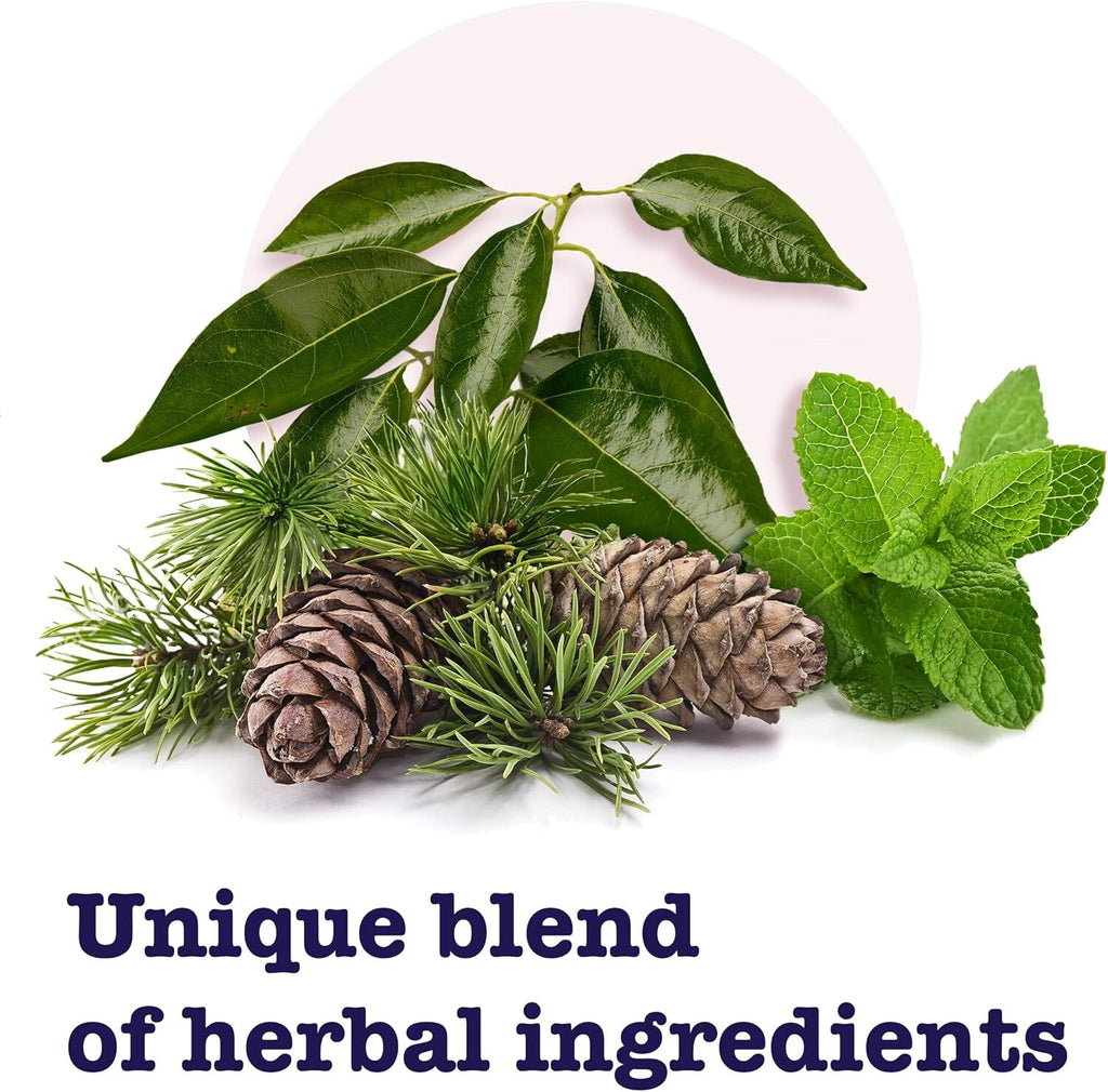 Simply dissolve one lozenge slowly in your mouth as needed (maximum 8 daily) for quick symptom relief. The sucrose-free formula contains isomalt and maltitol, enhanced with eucalyptol, camphor, and pine needle oil for superior soothing power.