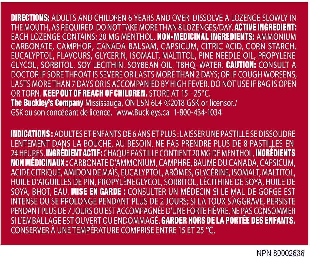 Fast-Acting Buckley's Menthol Lozenges for Sore Throat Relief