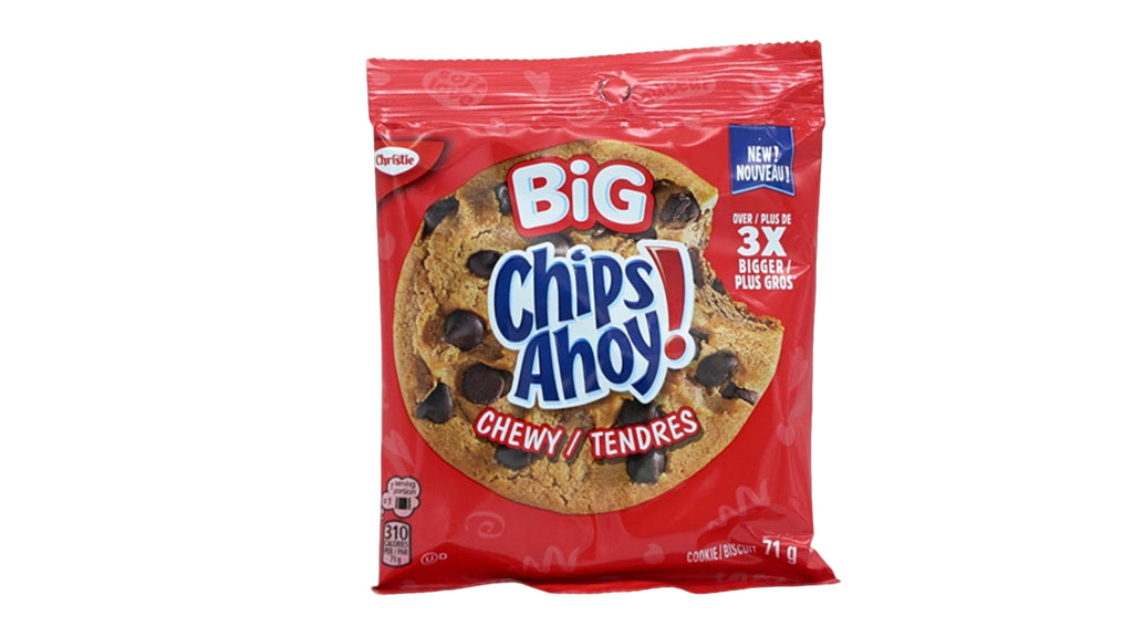 Craving a seriously satisfying snack? Meet the Chips Ahoy! Big Chewy Chocolate Chip Cookies 71g – the ultimate treat for chocolate chip cookie lovers who want MORE. These aren't your average cookies; they're over three times bigger than regular chewy varieties, loaded with rich semi-sweet chocolate chunks in every soft, tender bite. 🍪