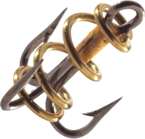 The golden wire wrap isn't just for show—it's engineered to boost your catch rate! This textured coating acts as a weed guard, helping your Eagle Claw fishing lures glide through vegetation without constant fouling. The dark metallic finish provides stealth underwater, while backward-angled barbs ensure fish stay pinned from strike to net. Whether you're jigging for walleye on the Grand River or casting for smallmouth, these replacement treble hooks deliver professional results every angler will appreciate. 💪
