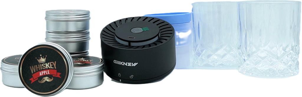 Simply load your choice of 6 natural wood chip flavors into the twist-off chamber, press the power button, and watch as rich smoke infuses your drinks through the magnetic glass attachment. Perfect for old fashioneds, aged whiskey, or culinary creations!