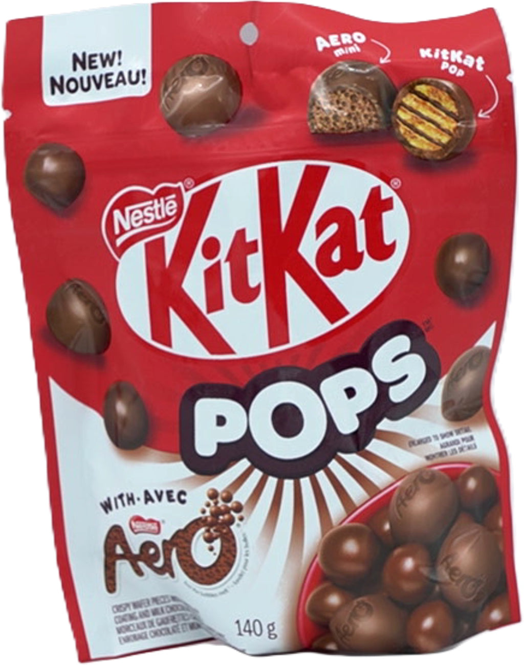 Experience the ultimate chocolate fusion with KitKat Pops with Aero Chocolate 140g from Nestlé! This innovative Canadian treat combines crispy Kit Kat wafer pieces with bubbly Aero mini chocolates, all wrapped in smooth milk chocolate coating. Every bite delivers that signature Kit Kat crunch meets Aero's light, airy texture for a truly unique snacking experience. 🍫